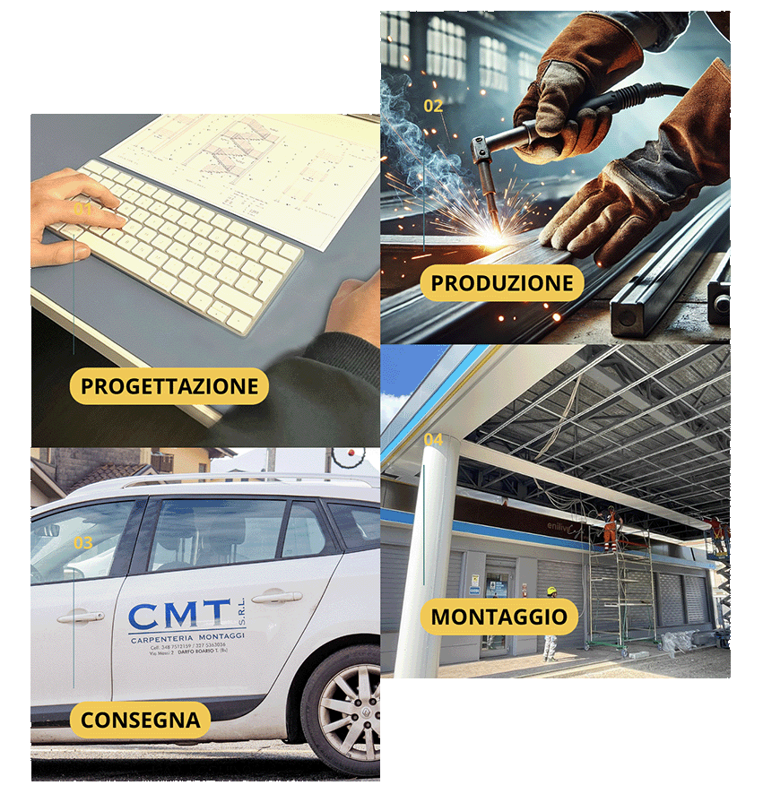 Ogni progetto nasce da un’attenta analisi tecnica delle esigenze del cliente. Il nostro ufficio tecnico sviluppa disegni 2D e 3D, calcoli strutturali e modelli dettagliati per garantire precisione e sicurezza.